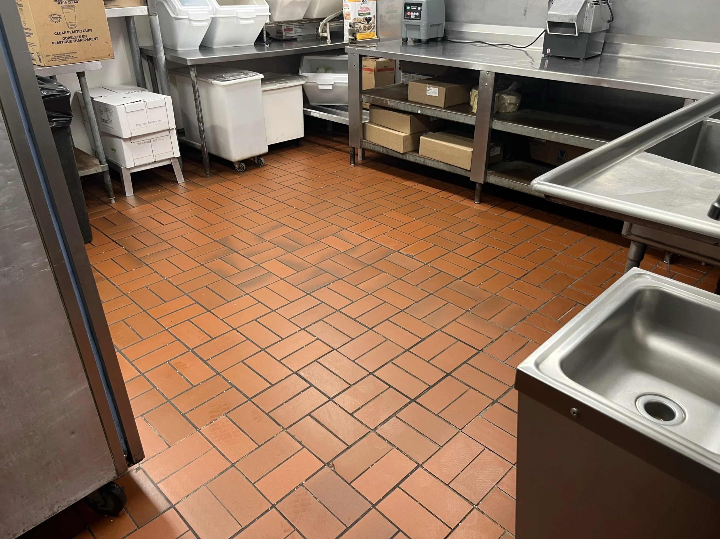 Management at this Santiago’s location had noticed that their tile floors, especially in areas like the soda station and kitchen line, were becoming dangerously slick—despite regular cleaning. They were concerned about staff safety, potential liability, and the rising risk of a serious slip-and-fall.